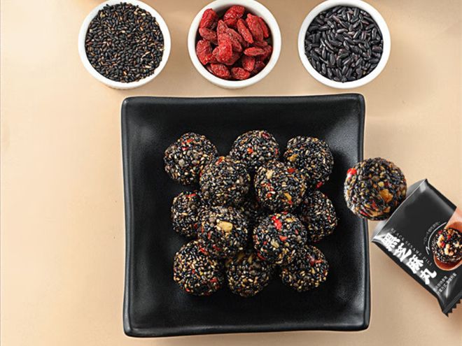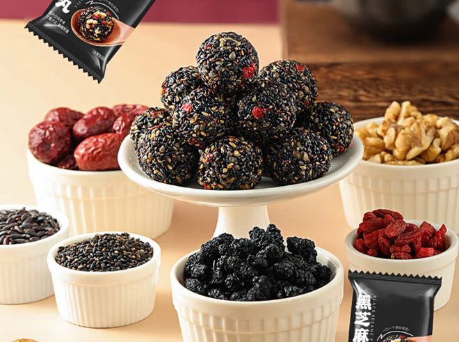 春节期间,亲朋好友相聚一堂,聊天打牌之余,一份精美的小零食无疑是最佳的伴手礼。芝麻核桃丸不仅富含不饱和脂肪酸、蛋白质及多种微量元素,有益健康,其独特的香脆口感更是让人欲罢不能。芝麻丸采用经典的核桃、红枣、枸杞,桑葚、黑米和芝麻等原料,与创意十足的麦芽糖与植物油等混合而成,每一包都承载着满满的心意与祝福。