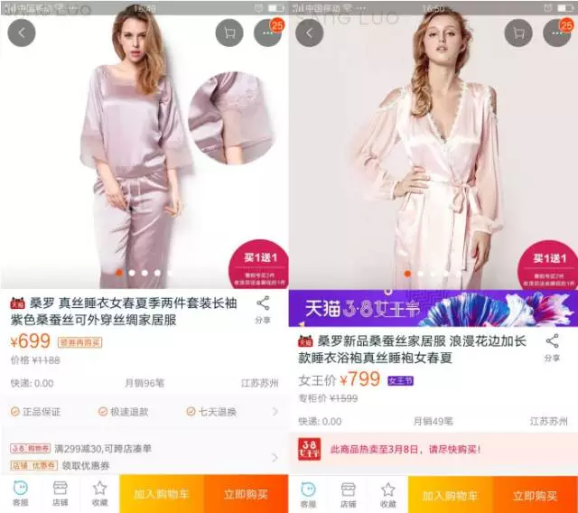 该行为违反了《中华人民共和国价格法》第十四条第四项的规定:利用虚假的或者使人误解的价格手段,诱骗消费者或者其他经营者与其进行交易。因此,对华佳丝绸给予警告处罚。目前,天猫界面显示,“sangluo 旗舰店”拥有38.2万粉丝,主要销售女士蚕丝性感睡裙、真丝睡袍、蚕丝文胸内裤以及床上用品等。上述两款睡衣的月销量分别为96笔和49笔。