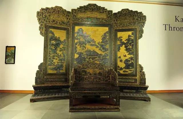 博物馆中有个很大的展厅,正中摆放着一组康熙年间的紫檀嵌螺钿大屏风及宝座。紫檀木被削得很薄,贴上之后使人感觉浑然天成,更有紫气东来的气势。它们作为常设展一直都在这个厅里展出,它的四周陈列着古斯塔夫·艾克所藏的黄花梨家具,紫黄一堂对比十分明显。